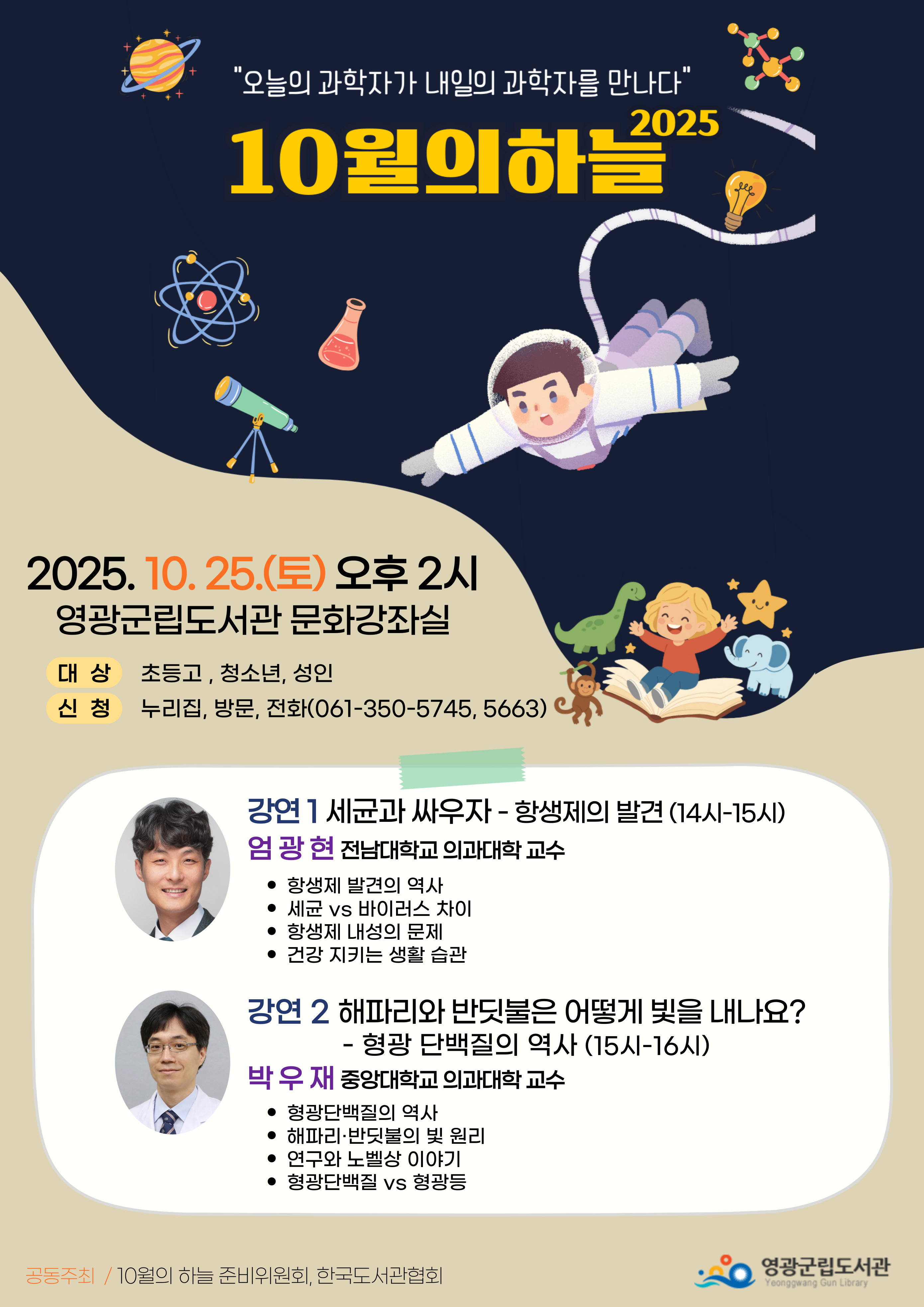 10월의 하늘은 10월의 마지막 토요일 오후 2시에 전국의 50개 도서관에서 동시에 실시하는 과학자의 재능기부 강연입니다.